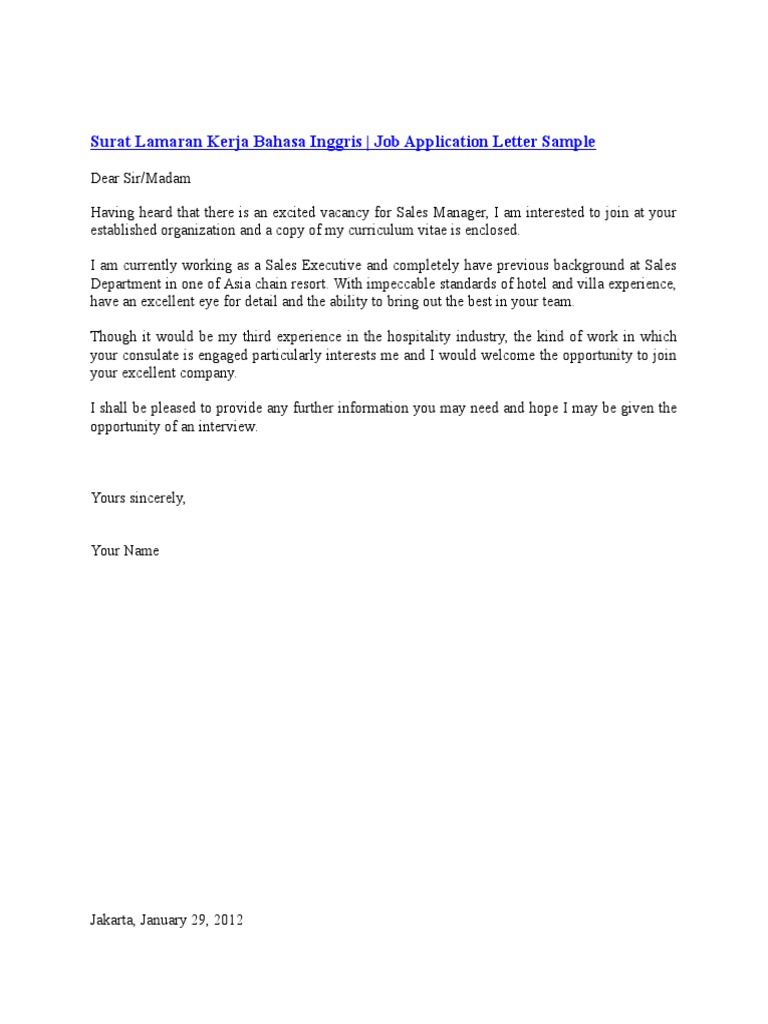 Contoh Surat Lamaran Kerja Hotel 1 Surat Bahasa Inggris Bahasa