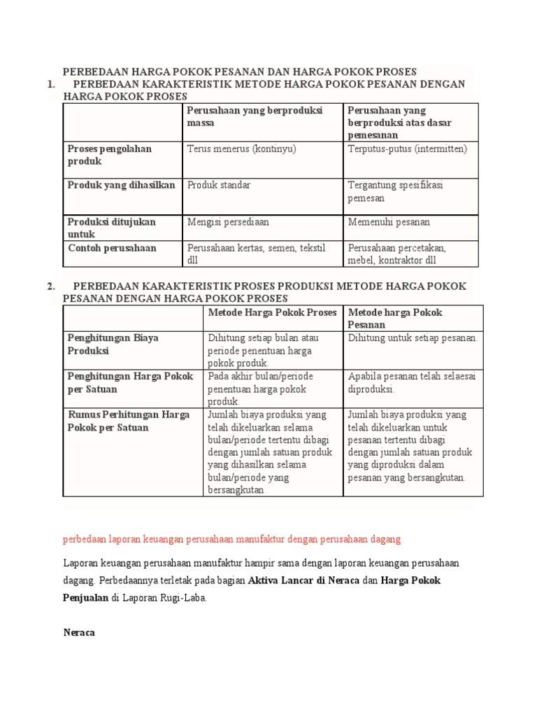 Perbedaan Harga Pokok Pesanan Dan Harga Pokok Proses Pdf
