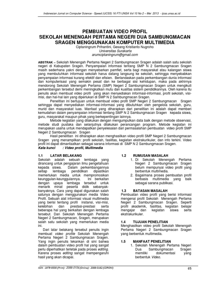 Pembuatan Video Profil Sekolah Menengah Pertama Negeri Dua Sambungmacan Sragen Menggunakan Komputer Multimedia Pdf