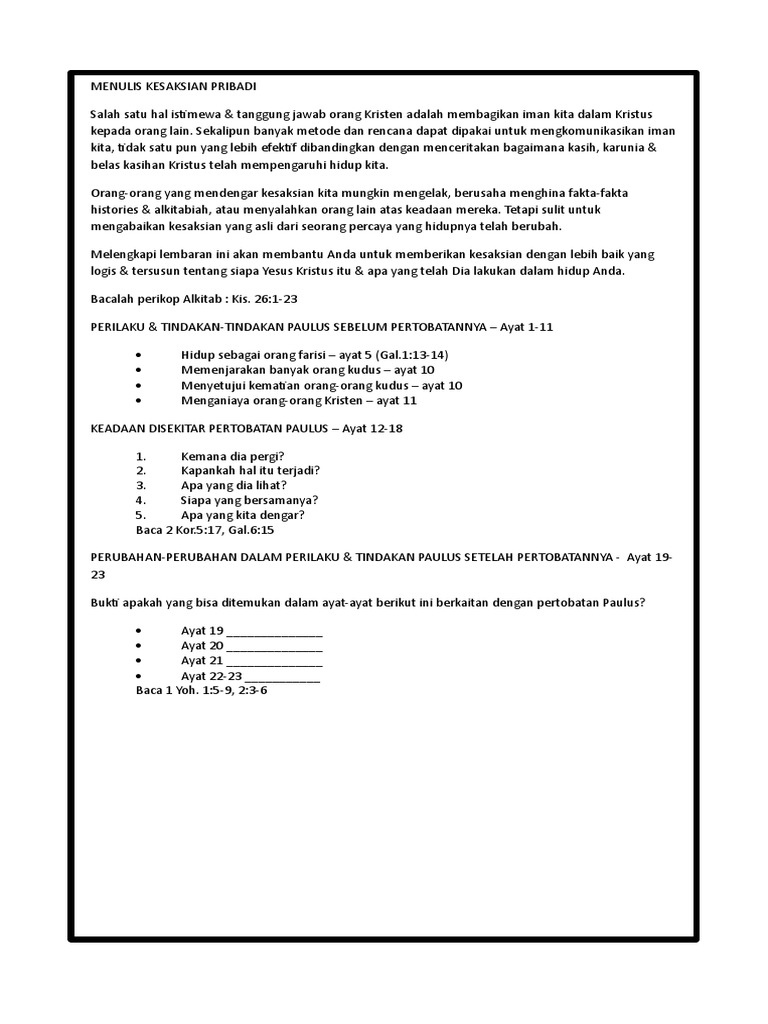Kesaksian Pribadi Mahasiswa Sekolah Tinggi Theologia Pelita Bangsa Sttpb Nama Agustinus Lombu Kampus Stt Pelita Bangsa Jln Pasar Baru Selatan Nor 25 Jakarta Pusat Tlpn 021 3858218 3864041 45 3864058 59 Fax 0213524945 Kode Pos 10710 Email Ketua