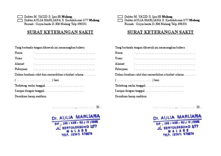Contoh Surat Sakit Dokter Kosong Nusagates