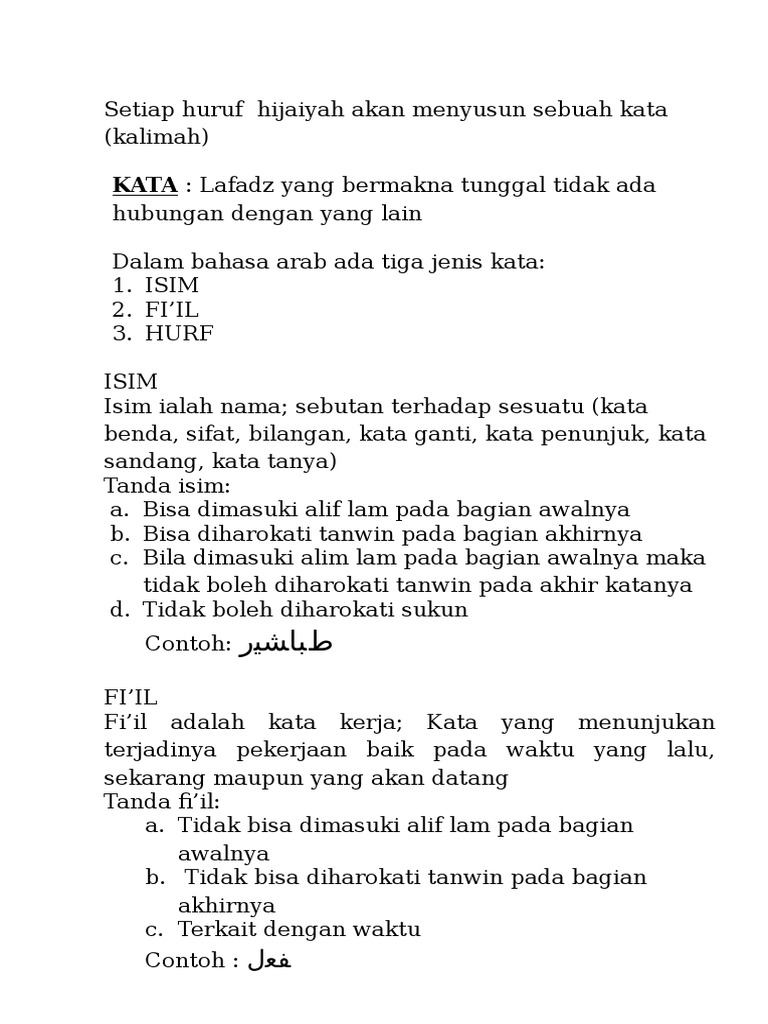 Contoh Isim Dalam Bahasa Arab Lengkap Dan Penjelasannya