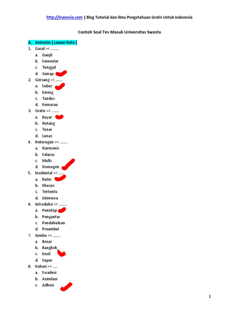 Contoh Soal Tes Masuk Perguruan Tinggi Swasta Pdf Berbagai Contoh