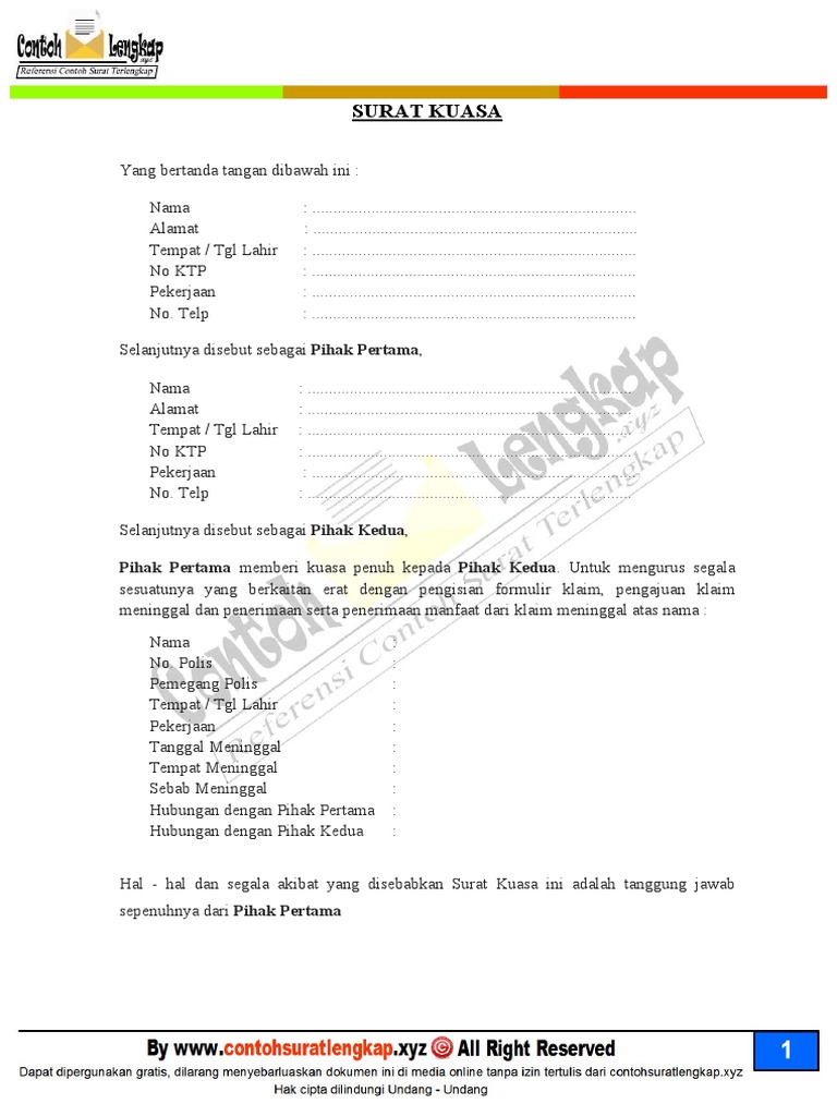 Contoh Surat Kuasa Khusus Untuk Polis Asuransi Pdf