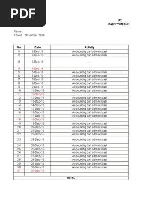 Contoh Timesheet Karyawan Bulanan Beinyu Com