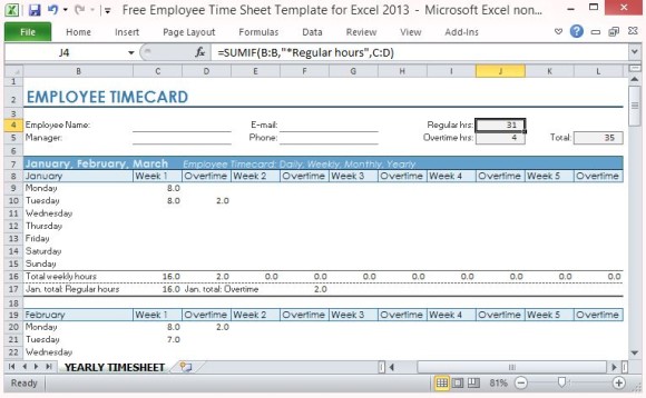 Free Time Karyawan Lembar Template Untuk Excel 2013
