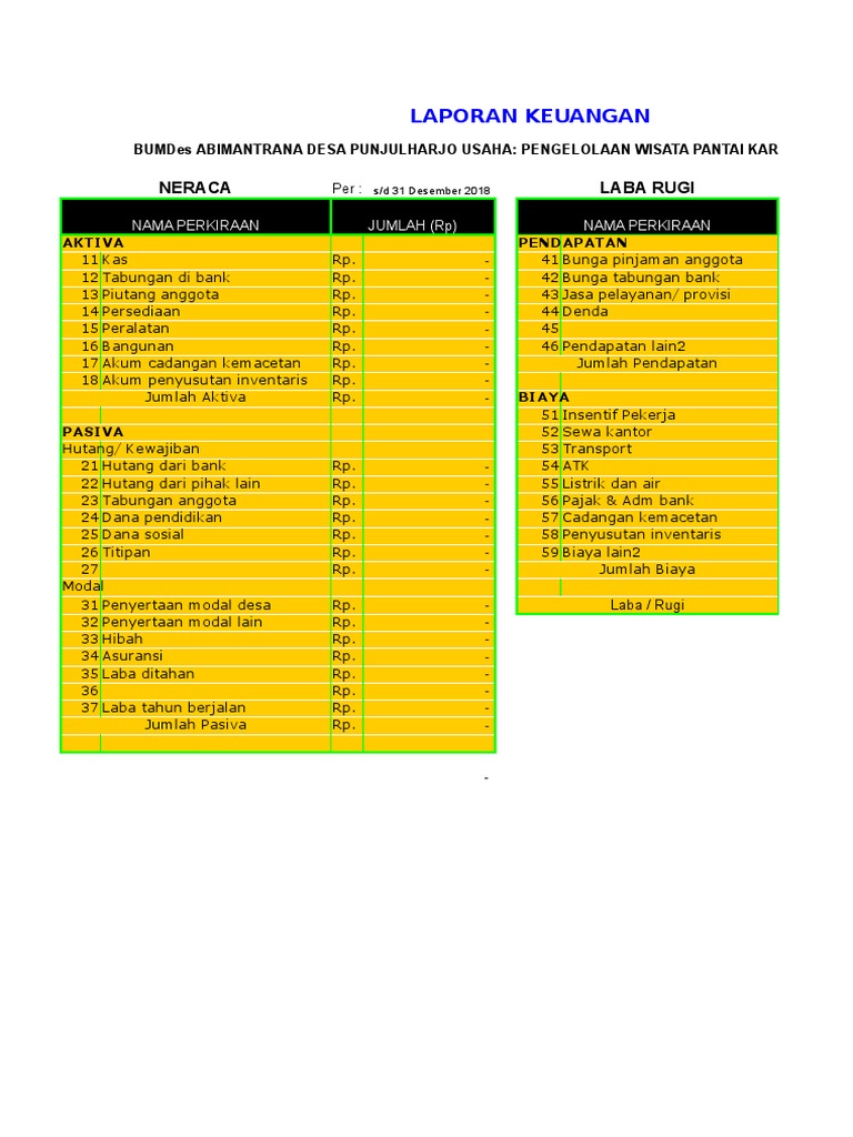 Contoh Laporan Keuangan Bumdes Excel Revisi Id
